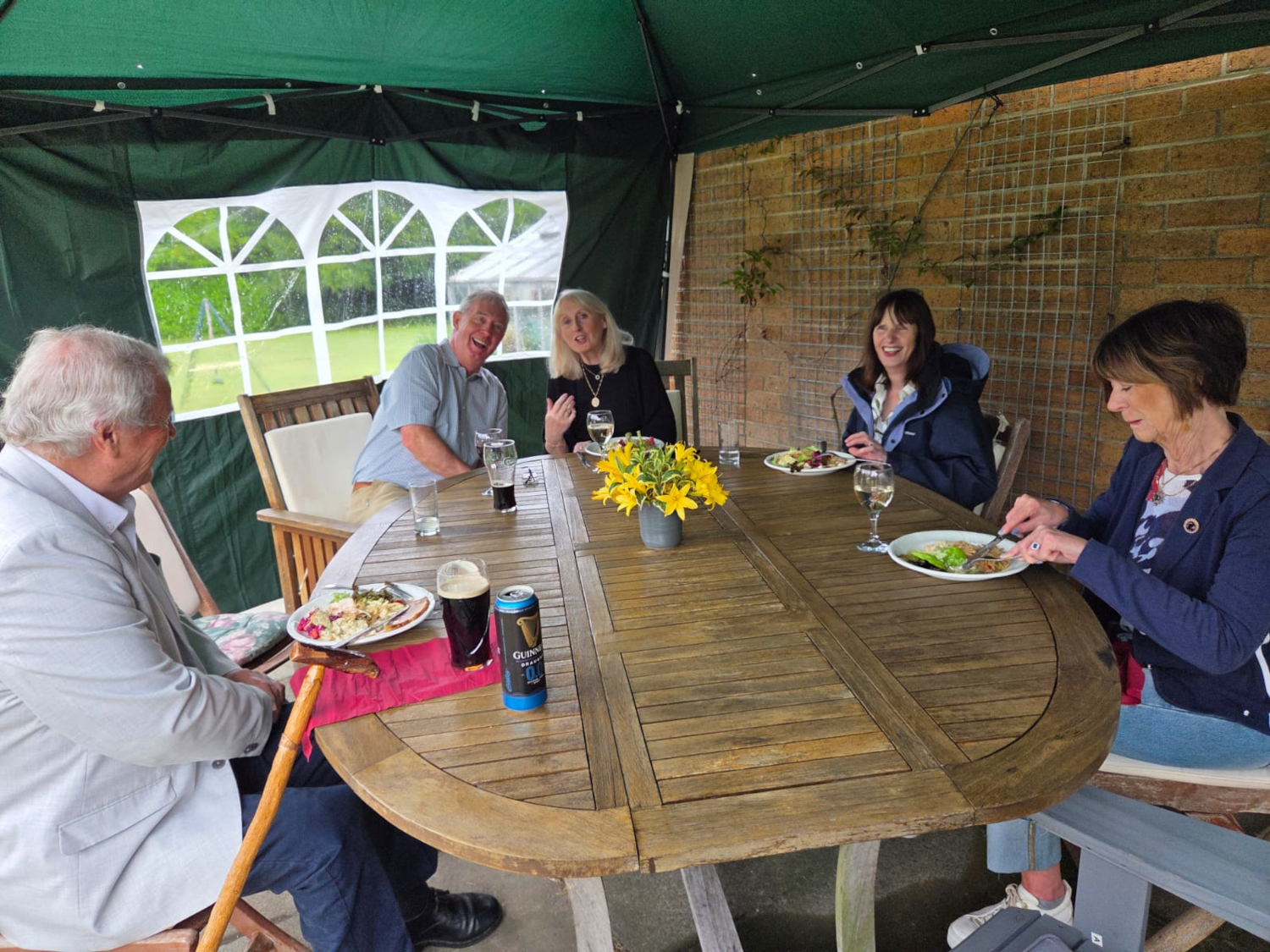 Much fun and laughter was had, delicious food, wine and soft drinks enjoyed, at the Club Gathering, Sunday 09 June held in a member's home. The weather although not sunny was kind and it was possible to mingle outside before eating. Some hardy folk even stayed outside!