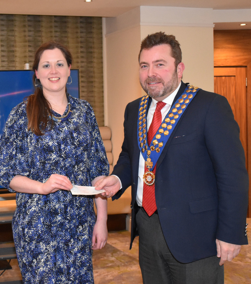 Hannah Mc Kimm Pres Steven 30.01.23On Monday 30 January guest speaker Hannah McKimm in a detailed well-received presentation highlighted that sexual violence is a very important but taboo subject and her vision is to create a world where sexual violence appears in history books not newspapers. She revealed that more women are murdered by domestic violence in NI than in any part of the western world and that this violence doesn’t just happen it builds - there are signs, behaviours and patterns and there must be a greater awareness and understanding of the impact of Trauma on someone. She maintained that trauma does not come from the event but from not being able to talk about it and pointed out that she wants to educate and raise awareness and create safe spaces for survivors of sexual trauma to find support, growth and healing.