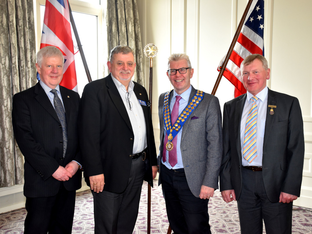 President Mark was delighted to welcome Rotarians Past President Paul Leathem, Donaghadee Club Foundation Chair (shown far left), Past President Martin Sayliss, Newtownabbey Club, and Past President Tom Hillery, Bray Club, to District Foundation Chair's Dave Murray address to the Club Monday 11 February.