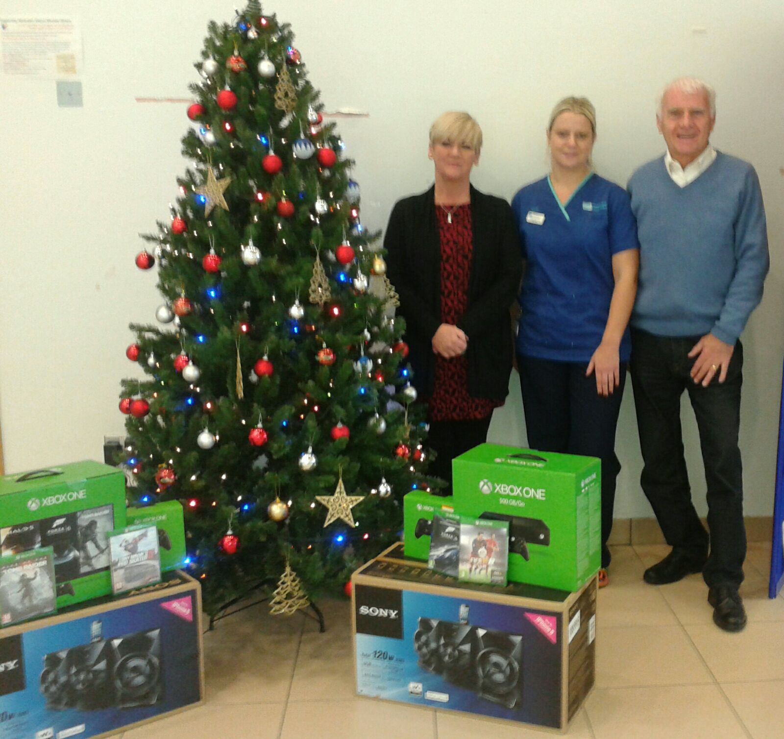 Special gifts were handed over to the Beechcroft Children's Unit at Forster Green Hospital for Christmas. This unit was chosen at Christmas because the children there are from disturbed backgrounds and as a result they don't get to know the meaning of a happy family Christmas. They included 2 X-Box Games Systems complete with games and two additional wireless controllers for extra players. We also gave them two Sony Music Centres that can accept CDs and practically any type of i-phone or i-pod. They were included in Santa's gifts when he visited and unloaded his sleigh.