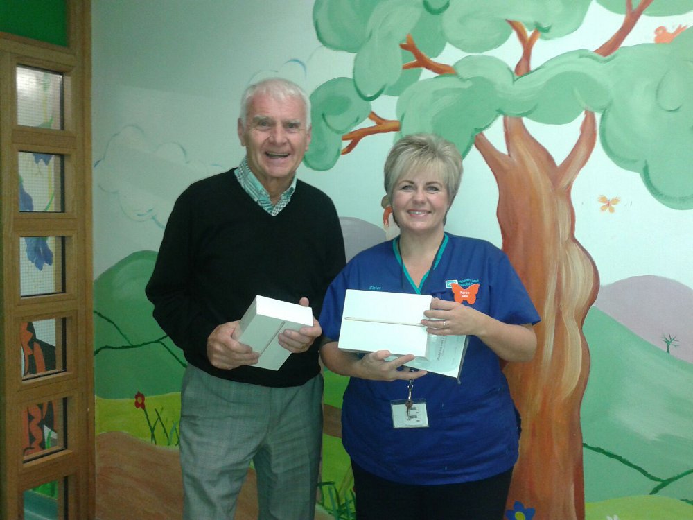 The Head of the Unit Jackie Wilson and the Ward Sister Karen Coombes were delighted with our gifts and stressed how important this type of equipment was to help them to keep the children occupied and happy during their long periods in Beechcroft.Three Apple I-Pad Mini 3's complete with protective cases and screen protectors were presented to The Ulster Hospital, Acute Child Health Department - Paediatric Outpatients/Rapid Response Unit. The ward sister in charge of the unit, Karen Orr, requesting them explained that the range of games now available on tablets can keep the children amused for hours and even the youngest patients are experts!