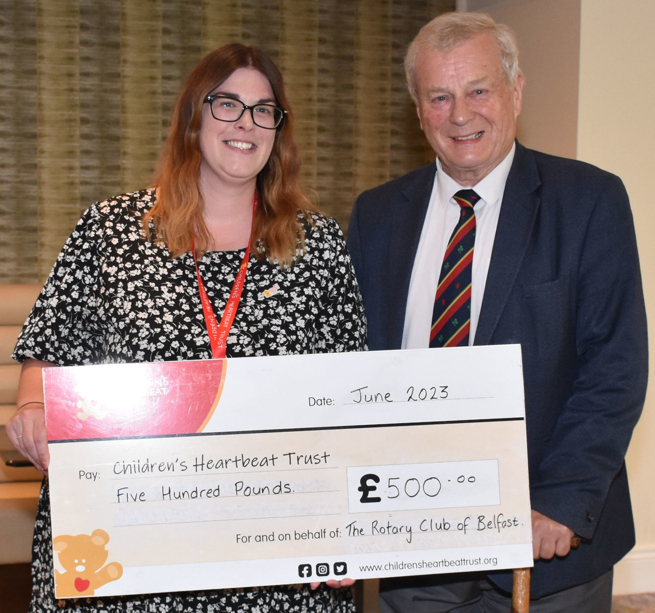 £500 to the Children's Heartbeat Trust, a small local charity who provide practical, emotional and financial support to children with congenital heart disease. The Trust’s Fundraising Administrator, Victoria Jackson, accepted the cheque when she addressed the Club meeting Monday 19 March, noting they aim to ensure that families can access the best cardiac care possible be it when in the Children’s Heart Centre at the Royal Belfast Hospital for Sick Children, travelling to London, Birmingham, Newcastle or Dublin for operations or back at home. Greatly thanking the Club for the donation, she stressed that they receive no government funding and heavily rely on the generosity of the public, local businesses and communities to help them fund their services for families.