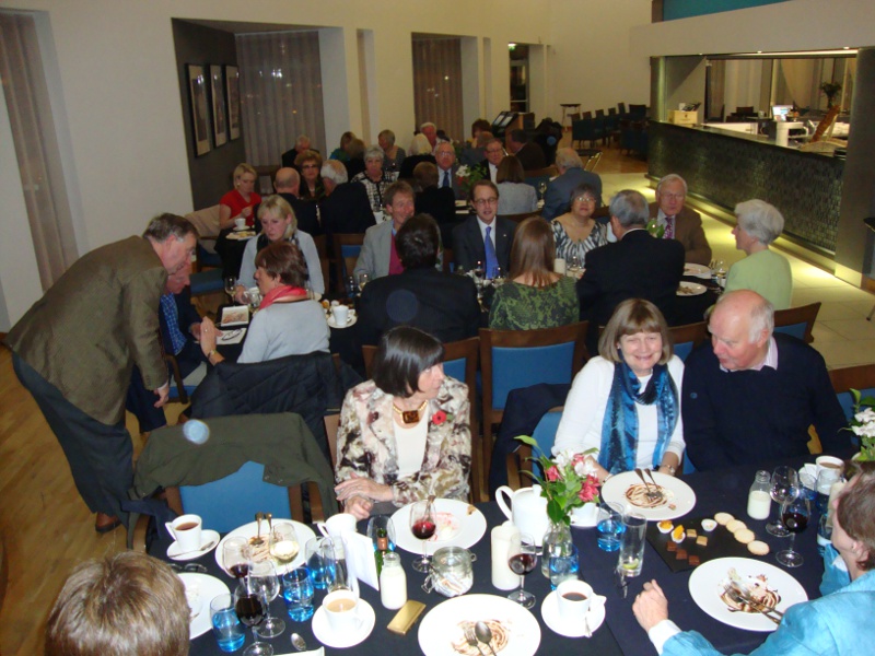 42 members and partners enjoyed a convivial fine dining evening at the Linen Lounge Restaurant at the Belfast Metropolitan College, Tuesday 04 November. The delicious 3 course meal so beautifully presented was prepared and served under supervision by teams of 8 and 4 students respectively and ranged from pigeon, butternut squash risotto and soup of the day to guinea fowl, lamb and cod all finished off with a delightful selection of desserts and complimentary petits fours with tea and coffee.
