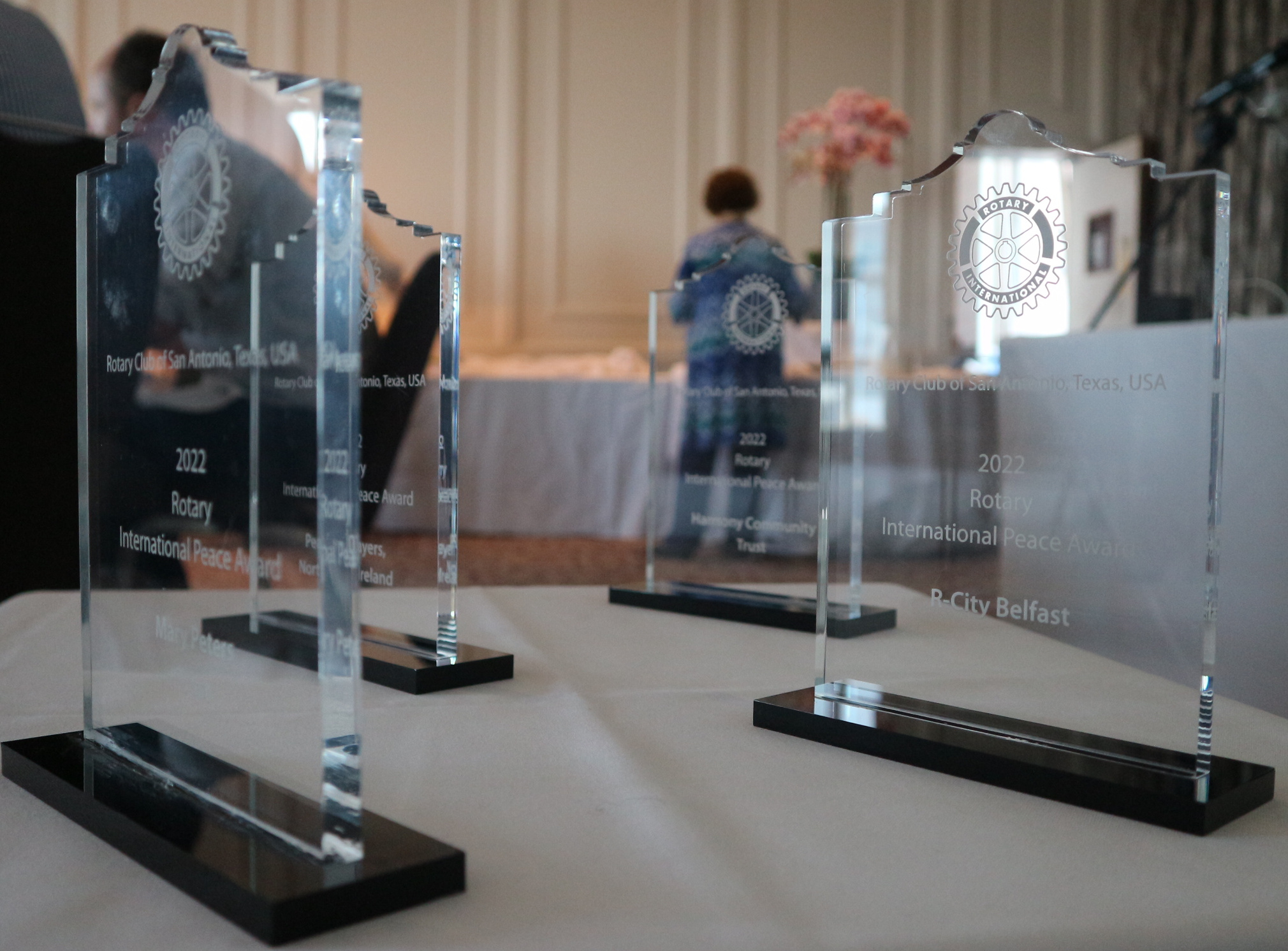 San Antonio's leading members Jack Maguire and JC Clapsaddle advised that they “had formed a relationship with Corrymeela following a visit to San Antonio by former Director Derek Wilson and as the San Antonio Rotary Club is committed to the Rotary philosophy of international peace building and reconciliation we decided to initiate these International Peace Awards. The recipients have been selected locally by the Belfast Club for their outstanding work for peace and reconciliation and young people and we are delighted to present the inaugural awards to these charities.”