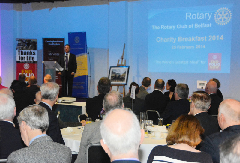 Belfast Lord Mayor, Councillor Máirtín Ó Muilleoir said he was delighted to be involved in the Rotary Club's breakfast morning and congratulated Rotary's fantastic work around the world attempting to eliminate this harrowing disease and was confident the ultimate goal would be reached.
