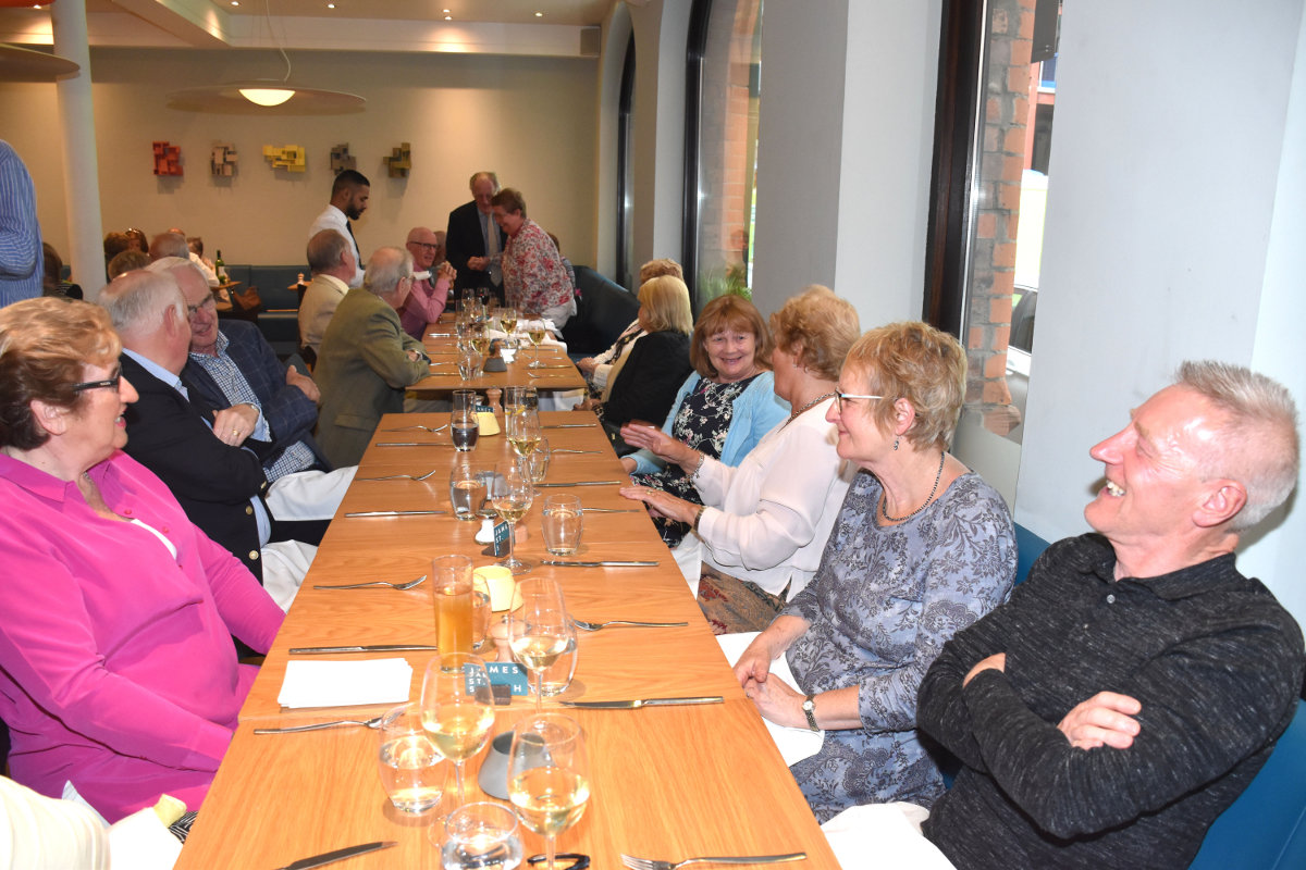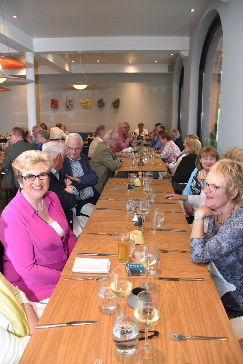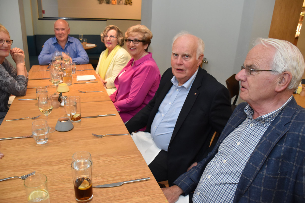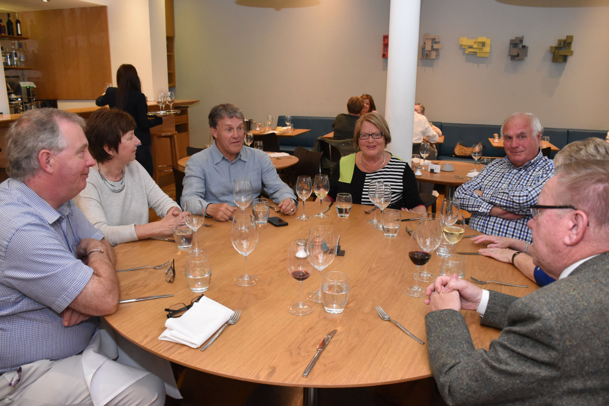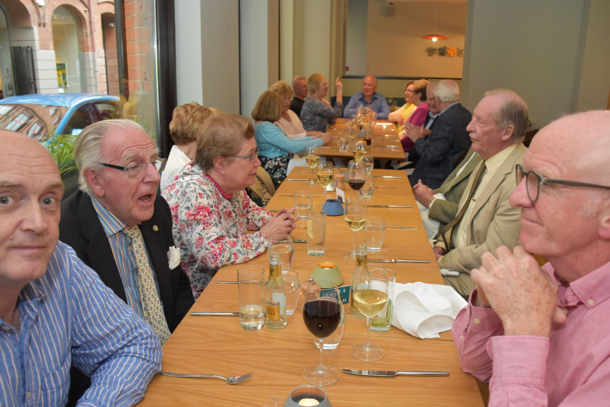27 members, partners and guests, spread over 3 tables, thoroughly enjoyed the latest fine dining 'Grub Club' evening which was held in James Street South Restaurant, Belfast, Tuesday 23 May. An excellent menu foretold a delicious 2 course meal, with glass of wine, which was enjoyed by all. Plenty of fellowship and chat completed this most successful evening - our thanks to PP Alan Rundle and Doris Houston for organising it.
