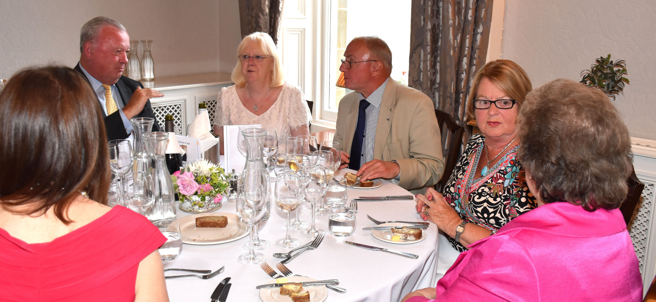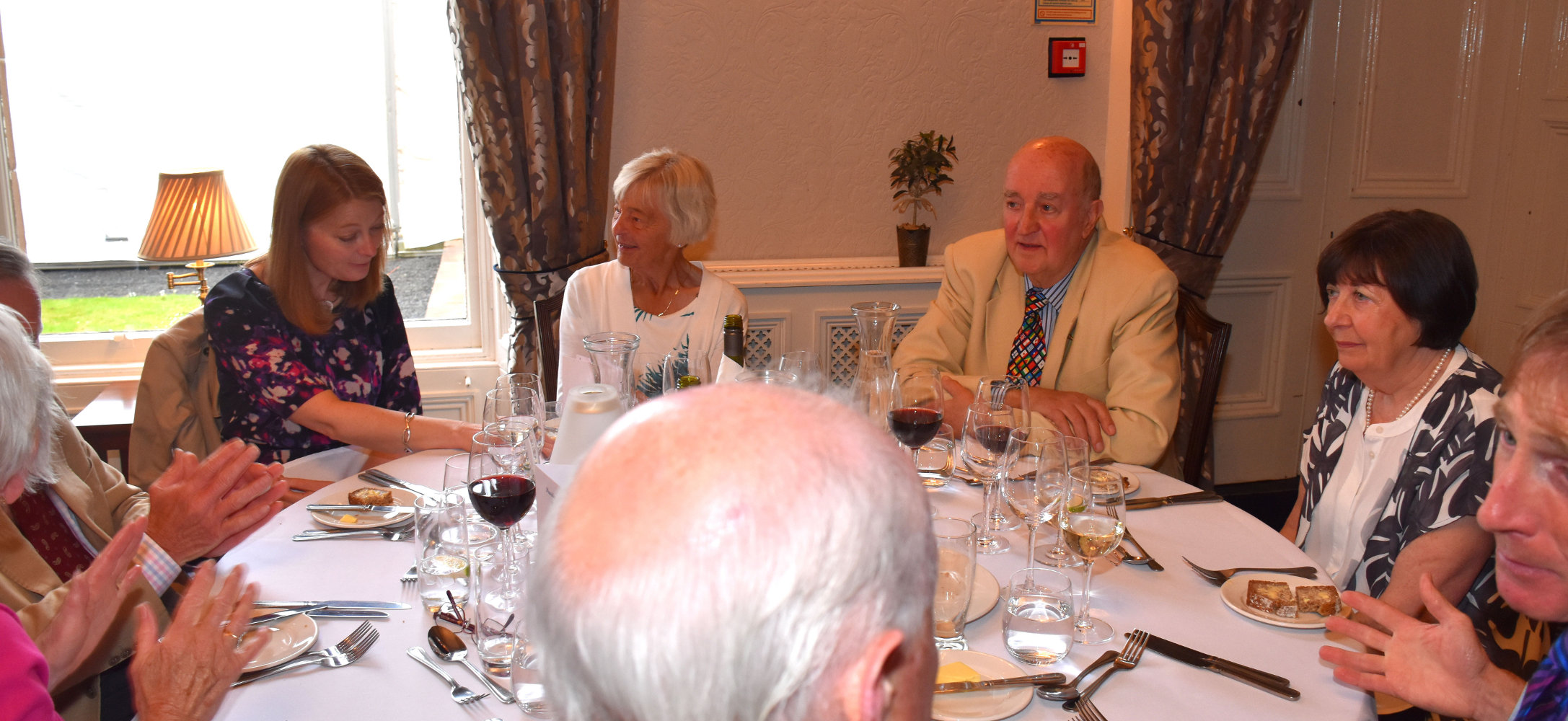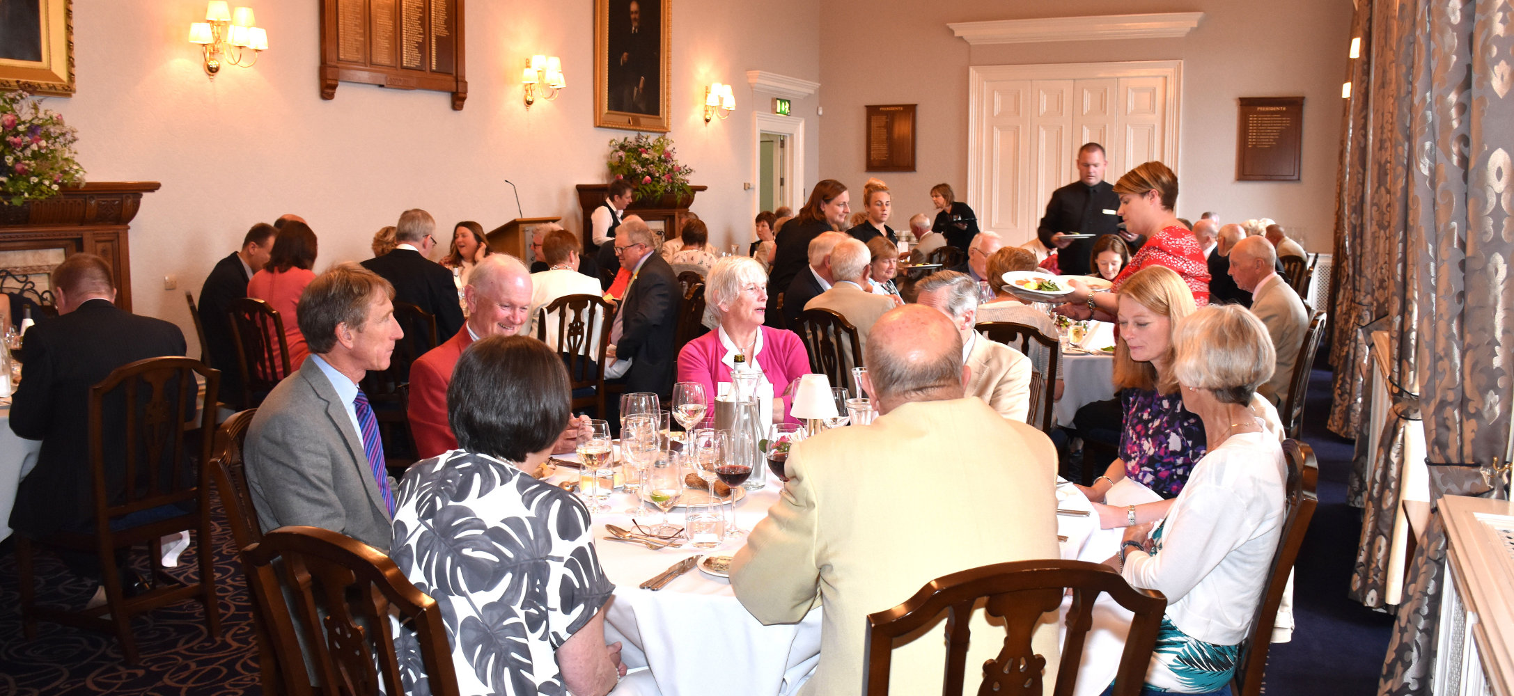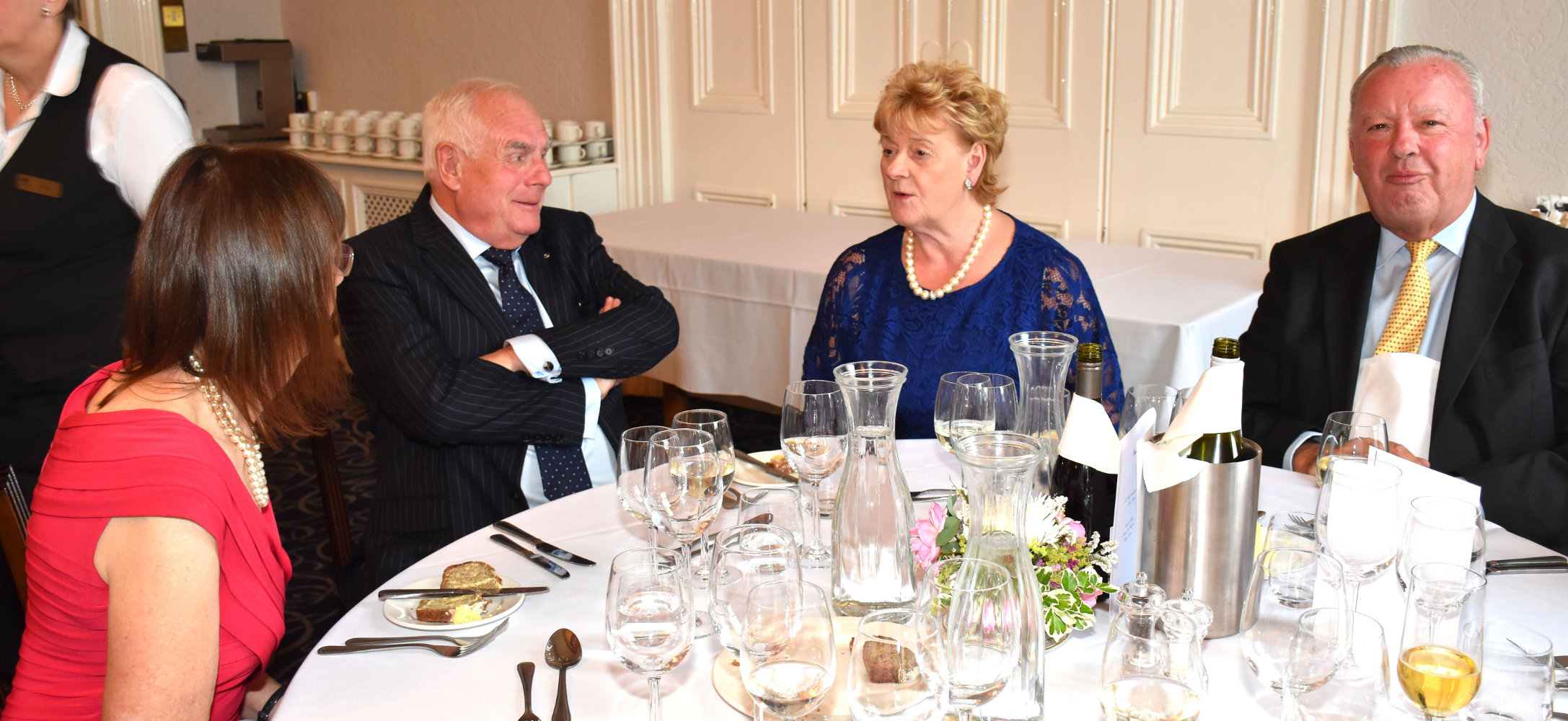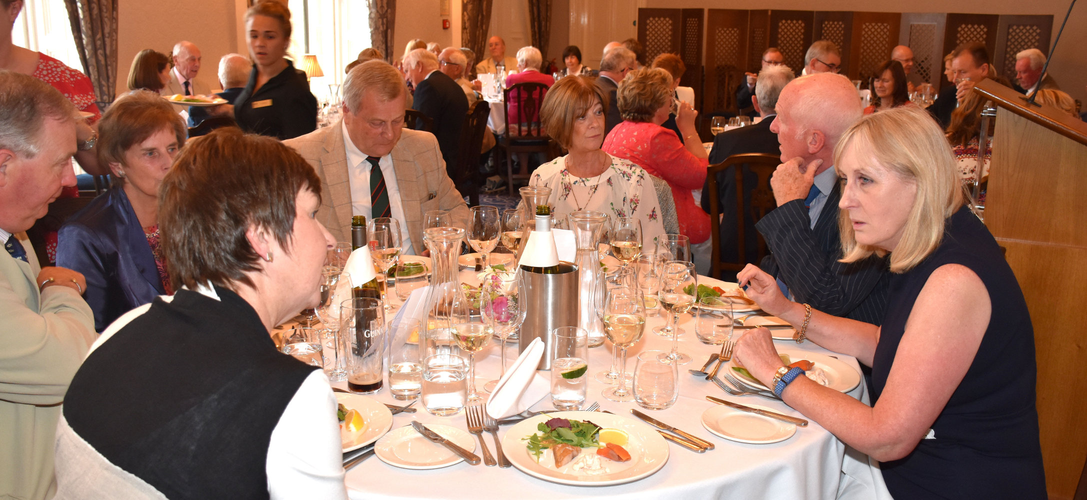 01.TablesGeneralPresident Ivan concluded his year at his President's Dinner held 26 June at the Royal Belfast Golf Club. Always the highlight of the Club's year and this year's extremely convivial evening proved to continue that tradition being greatly enjoyed by the 63 members and guests. After drinks in the bar areas President Ivan welcomed all especially District Governor Elect Garth & Anne Arnold, President Belfast West Rotary Club Des & Jayne McFall President Elect Rosemary's daughter Karen Mbayo and District Assistant Governor Roland Bailie.