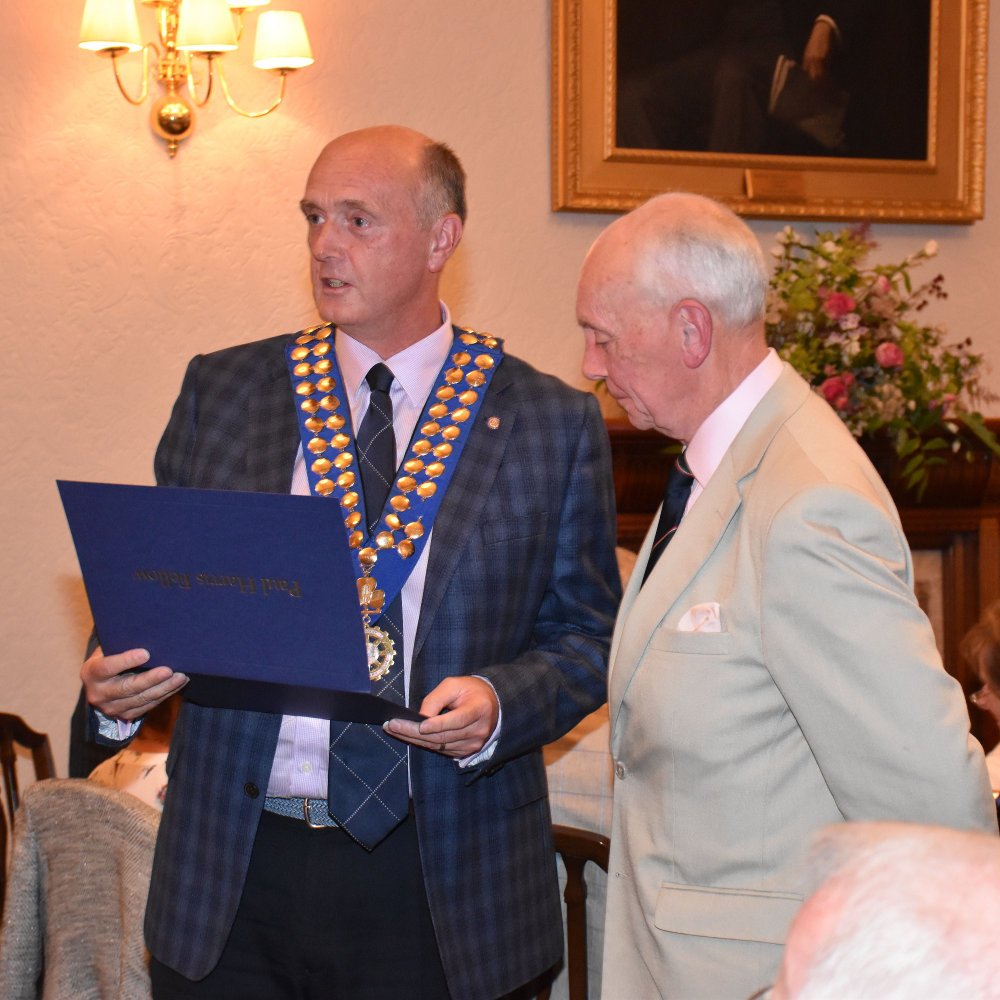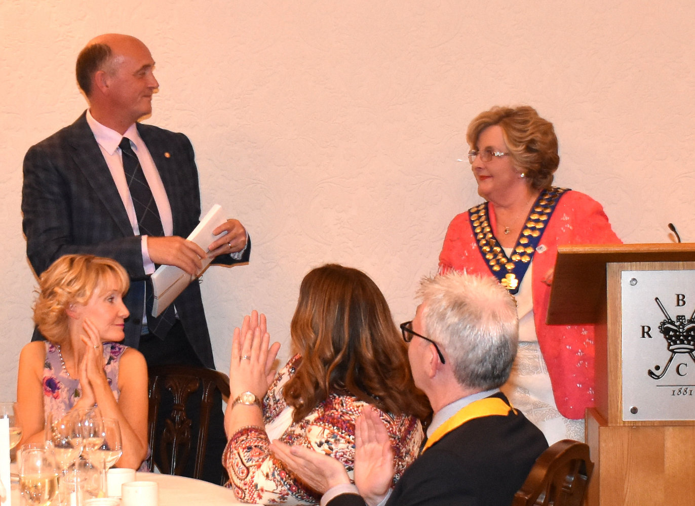 He reflected on his particular highlights: the Charity Golf Day, abseiling the Europa with PPs Gordon Millington and Ken Morrison, the District lunch hosted and fronted by the Club, with Foundation Trustees Chairman Kalyan Banjeree and the Ruby Paul Harris presentation to PP Gordon Millington. He highlighted that just under £20,000 has been donated to the causes we have chosen to support which is just short of £300, raised by and/or contributed, per member.
