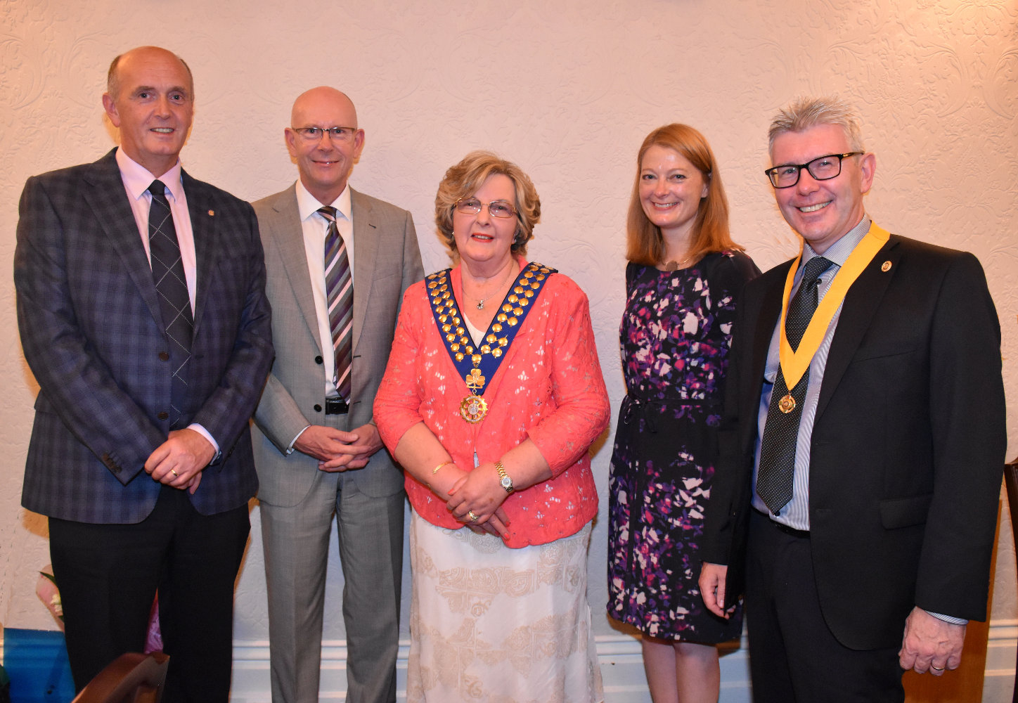 25.IPPwithTopTeam2017Wishing her every success he handed over the Chain of Office to President Rosemary who invited VP Mark Davidson to accept the President Elect Jewel and welcomed Karen Blair as Vice President.