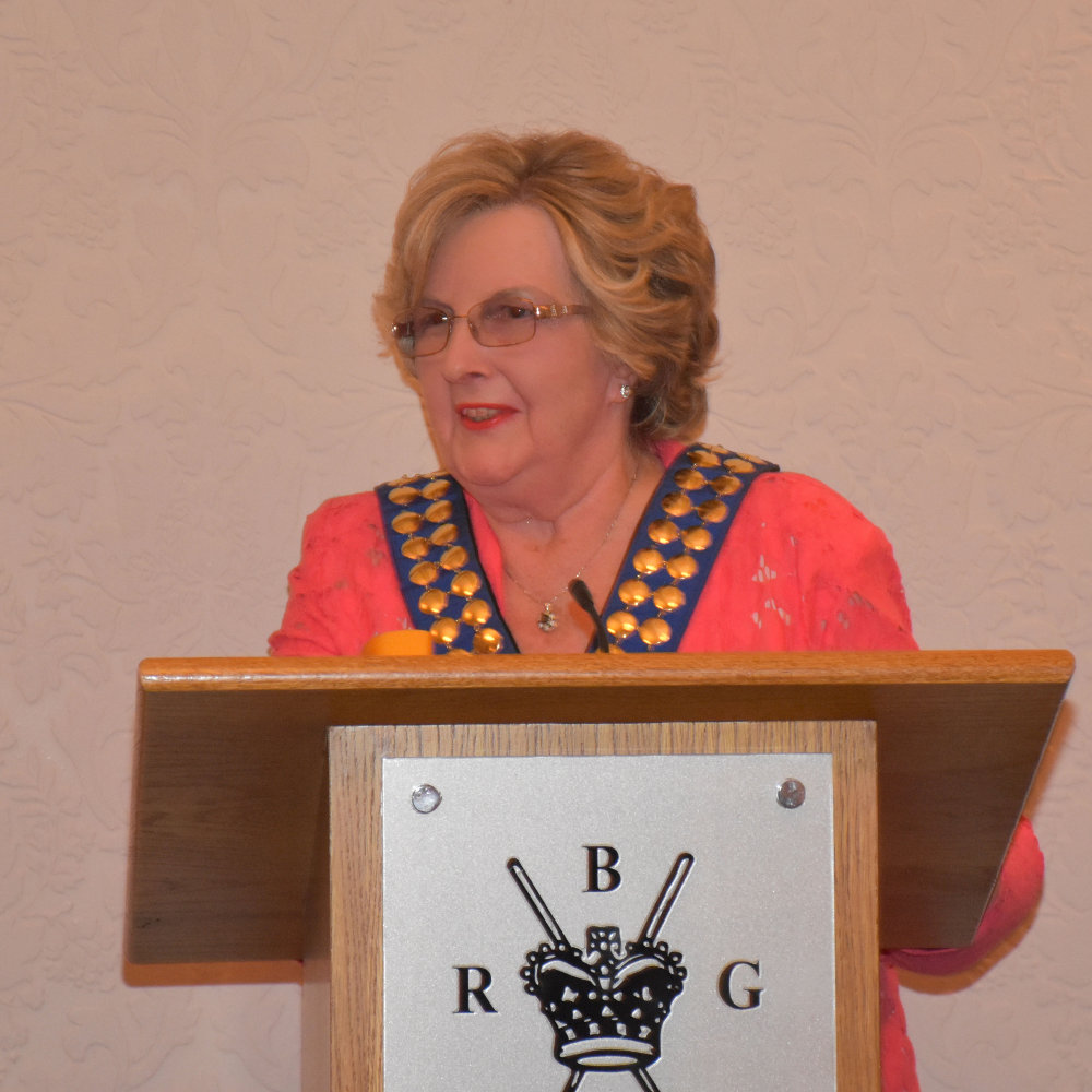 26.NewPresidentRosemaryIn her inaugural address President Rosemary congratulated “a most successful President on an outstanding year” she noted Immediate Past President Ivan's leadership had been exemplary and would be a hard act to follow but that she would “do it her way”. She reflected that there would be new young faces round the Council table mixed with a few more experienced Rotarians and that she would be following last year’s plans with an emphasis on promoting Foundation Sustaining Membership. She thanked those who had influenced her early years in Rotary - PPs Bryan Johnston and Courtenay Thompson - and Doris Houston and Eileen Kennedy for their friendship and support and stated that she was delighted to have the honour to be the 2nd woman President of the Club.