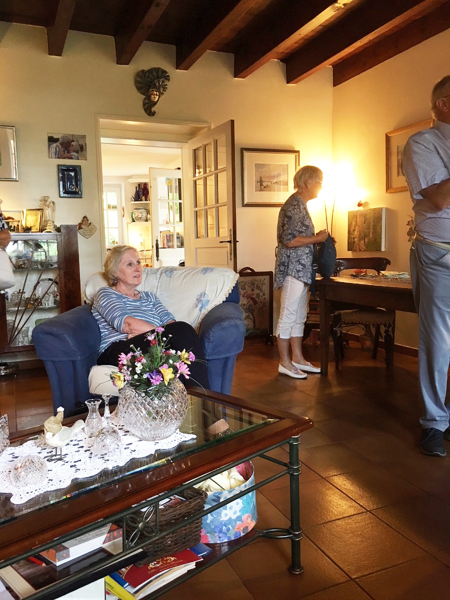 However the highlight of the trip was the visit of the group to chez Forshaw’s gorgeous home. Again sadly it rained so they had to enjoy the great spread of food sitting inside. However it did not deter the great craic and chat and more singing from Maurice & Sandra. A bouquet of flowers and a voucher from the local garden centre were presented to them with thanks for their organisation.