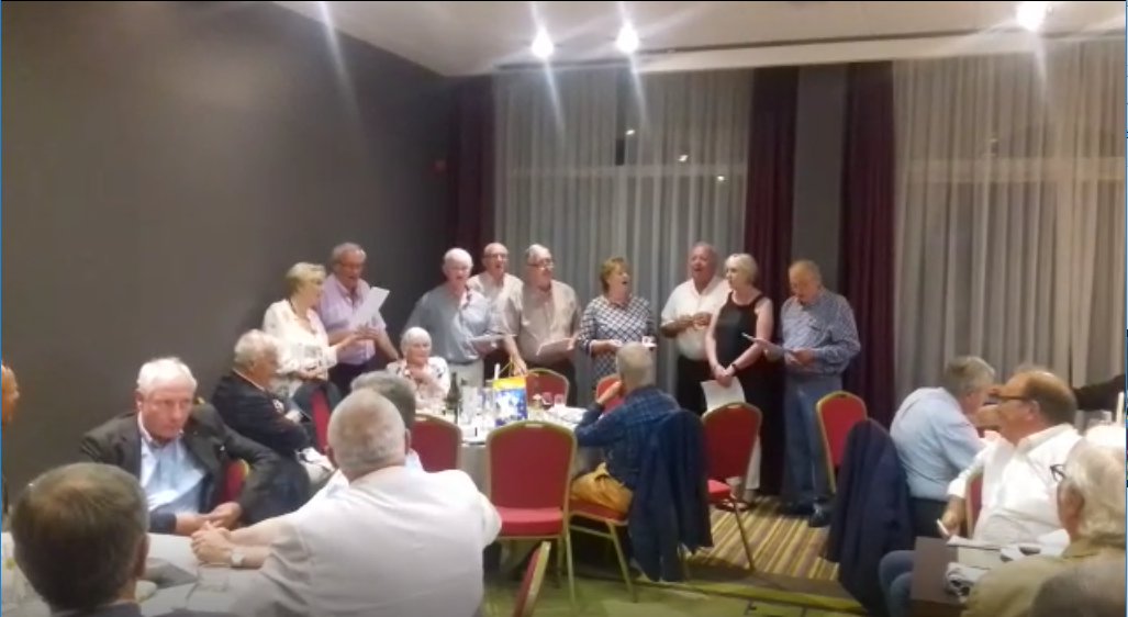 So many members turned up at the Rotary Club of Beaune meeting Thursday evening the hotel had to set 2 extra tables and they were regaled with a group singing starting with I’ll tell me Ma which they loved and responded with a rollicking napkin waving song and Danny Boy and the Mountains of Mourne which received “wild applause". It was also Past President Brian Clements' birthday on the day of the Rotary meeting and he says he has never had Happy Birthday sung so many times!