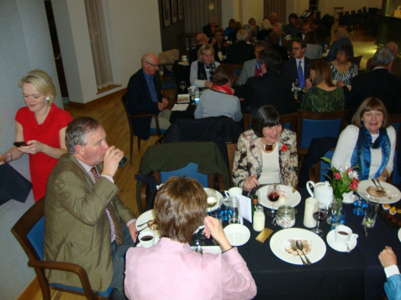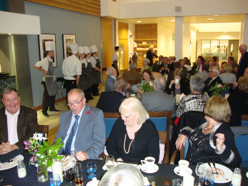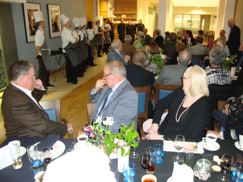 42 members and partners enjoyed a convivial fine dining evening at the Linen Lounge Restaurant at the Belfast Metropolitan College, Tuesday 04 November. The delicious 3 course meal so beautifully presented was prepared and served under supervision by teams of 8 and 4 students respectively and ranged from pigeon, butternut squash risotto and soup of the day to guinea fowl, lamb and cod all finished off with a delightful selection of desserts and complimentary petits fours with tea and coffee.