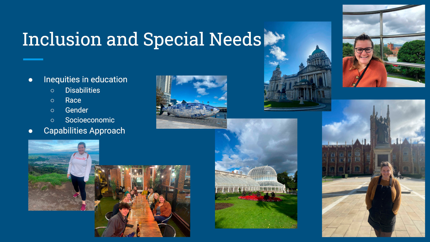 • the experience crystallised that she wanted to pursue helping children who have difficulty keeping up and she came across the Inclusion and Special Needs study at QUB which she described as "perfect for me" and which she is greatly enjoying