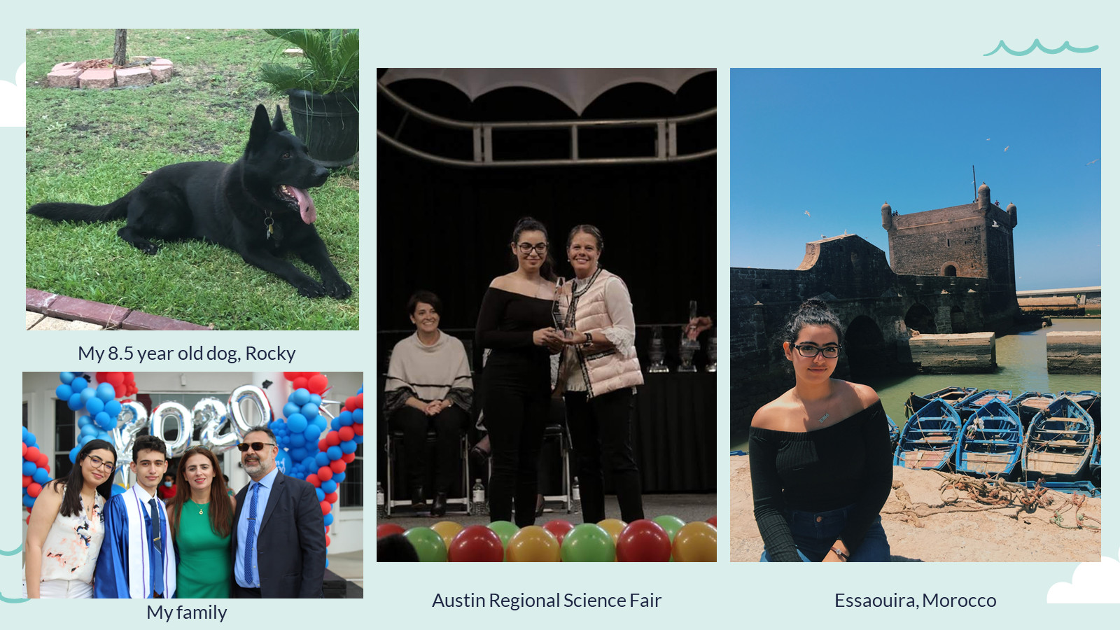 • both her parents are from Morocco, she is a "dog mum" to an 8½ years old Rania 2German Shepherd and is an avid linguaphile and traveller