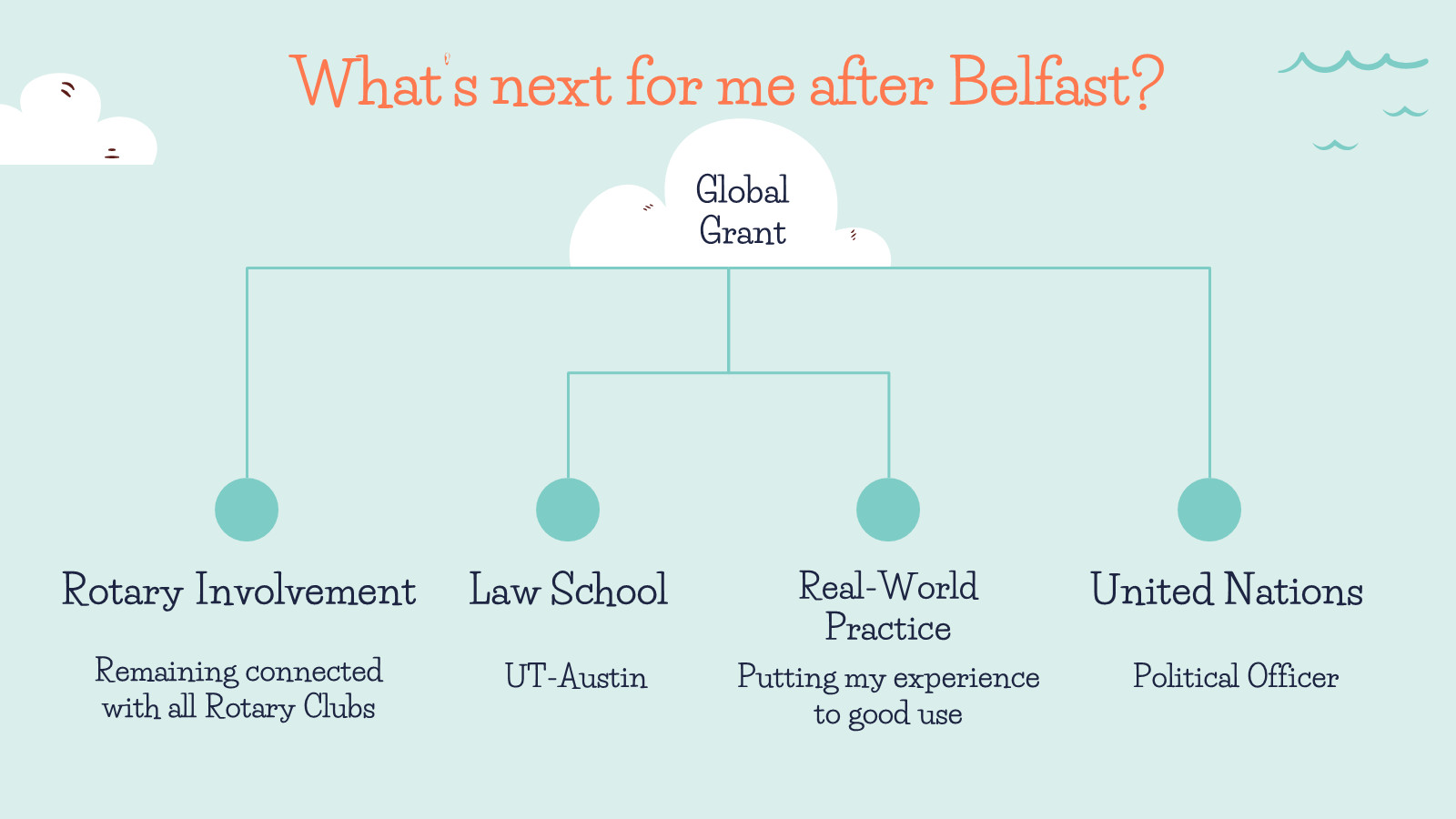 Rania concluded that the Global Grant Scholarship has changed her life and she hopes to maintain her involvement with Rotary and go to Law School in Austin hoping to put her experience to good use; her career goal is to be a Political Officer at the UN