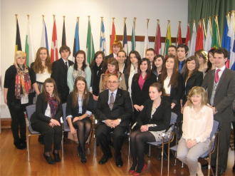 She advised that the working group chooses a spokesperson to present the conclusions of its discussions to the participants assembled in a 'plenary sitting' in the Chamber of the European Parliament at the end of the afternoon. The participants then vote on these conclusions and revealed that not only all 6 spokespeople were Irish but that all the questions raised were from the Irish students! Ireland, she claimed, was taking over Europe; so much so that the Parliament Chairman of the day asked if there was a non Irish question. A question was then asked in German but an Irish accent gave the questioner away! She concluded advising that unusually all 6 motions were passed.
