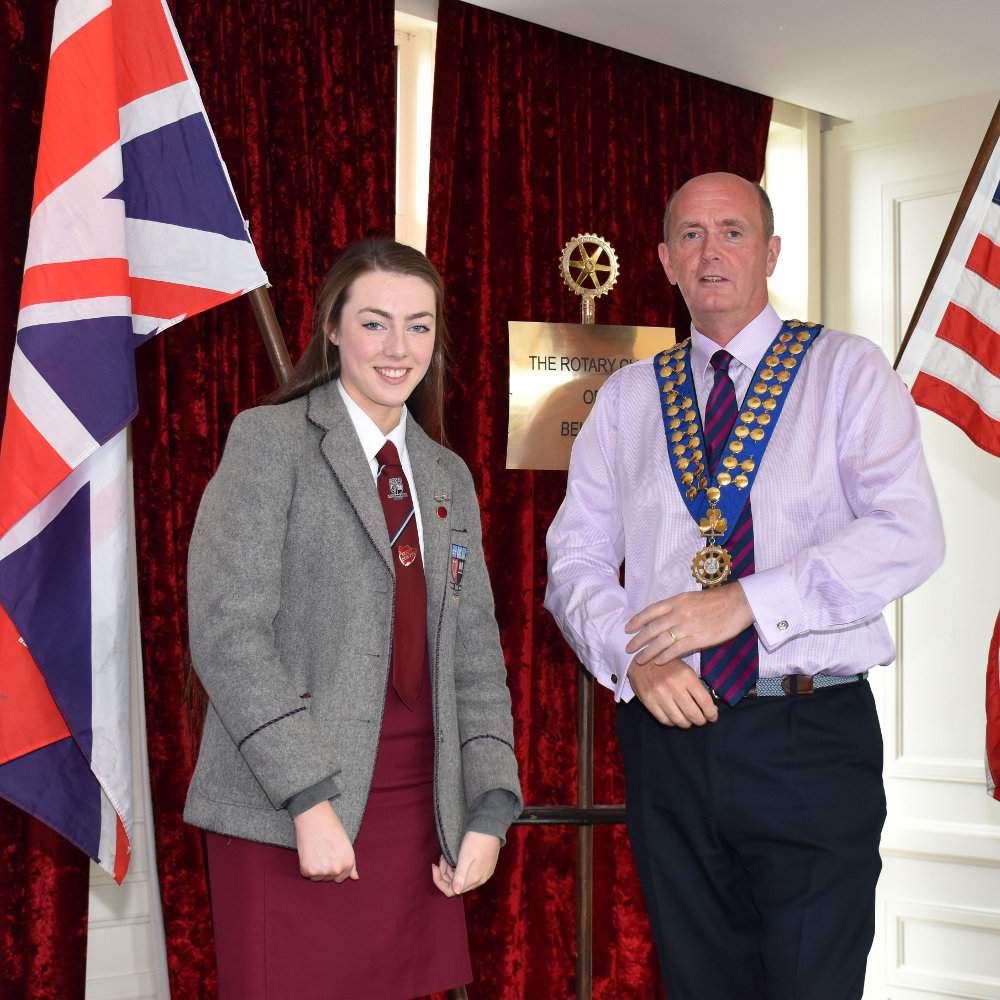 Congratulations to the Club nominee for the Youth Leadership Development Competition 2020 Mia Jackson, Methodist College Belfast, who, at the Regional Final, hosted by the Rotary Club of Belfast East Tuesday 26 November, won a place on the 24 member all-Ireland group to visit the European Parliament in Strasbourg and take part in the Euroscola Debate, February 2020.
